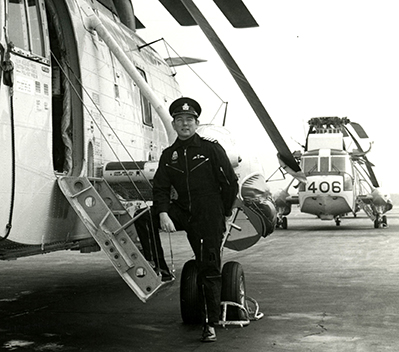 Larry Ashley a obtenu son diplôme du CMR en 1959. Ayant obtenu sa commission dans la MRC, il a été choisi pour devenir aviateur naval et a été envoyé à l’entraînement au pilotage avec l’Aviation royale canadienne. Après avoir reçu son brevet de pilote, il a été affecté à Shearwater, en Nouvelle-Écosse, comme pilote d’hélicoptère.