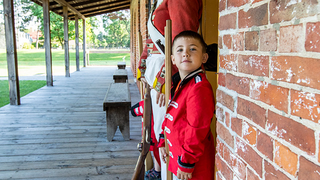 Acceptez le shilling de la reine et enfilez la tunique rouge d'un soldat britannique. Découvrez la cuisine au feu de bois, les chasses au trésor, l'artisanat du XIXe siècle et, bien sûr, assistez à une démonstration de tir au mousquet.