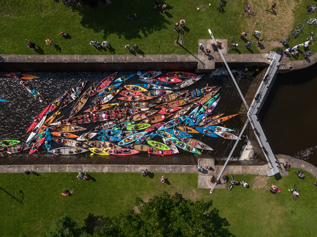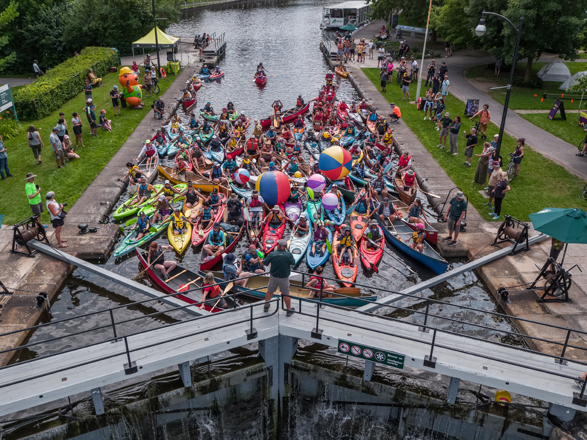 Depuis 2016, Éclusez et pagayez est une activité de pagaie communautaire qui se tient chaque année sur la voie navigable Trent-Severn. Cette activité peut être qualifiée de « foule éclair » ou de « masse critique » de canots et de kayaks. Les visiteurs de tous les horizons et de toutes les compétences sont invités à se rassembler et à franchir les écluses lors de cette activité d’une journée mettant à l’honneur ces trésors historiques. Les pagayeurs viendront de partout pour participer à cette manifestation unique.