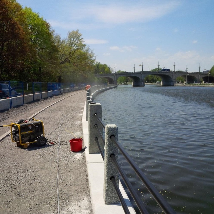 Le travail de réparation des murs est terminé, et de nouvelles mains courantes ont été installées. L’entrepreneur s’affaire maintenant à réinstaller les lampadaires et à réparer le sentier Est du canal Rideau. Le projet se terminera par des travaux d’embellissement des lieux, notamment la pose de gazon en plaques ainsi que l’enlèvement des roulottes de construction et d’autres éléments du chantier de construction.