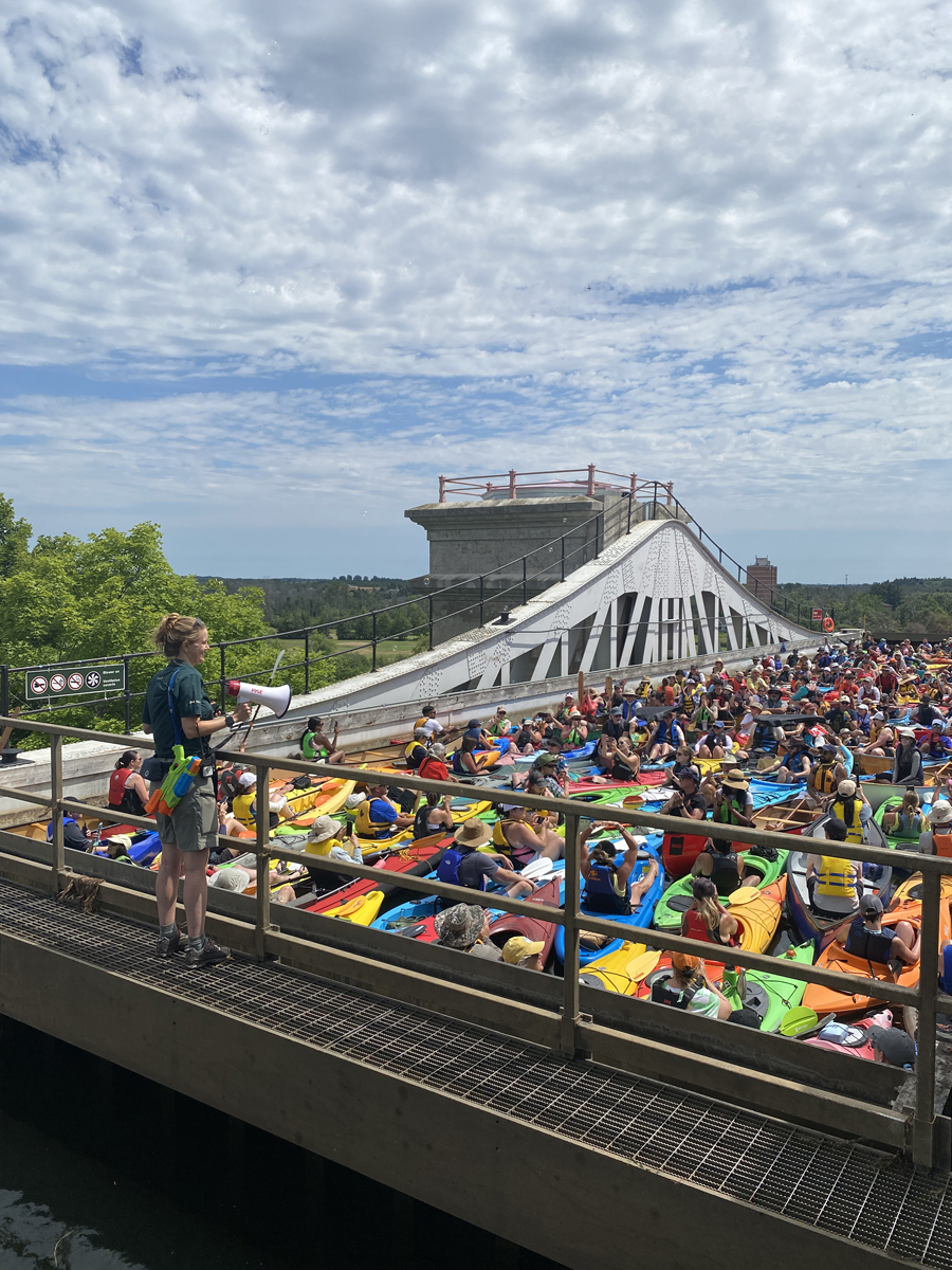 Prévoyez où vous mettrez votre canot ou votre kayak à l’eau pour vous rendre à l’activité (qui commence au bas de l’écluse-ascenseur de Peterborough uniquement, et non pas en haut). Les pagayeurs chevronnés peuvent choisir l’une des options à proximité et faire une courte balade sur l’eau du lac Little jusqu’à l’écluse 20 (Ashburnham). Là, ils pourront franchir l’écluse dans leur embarcation (30 à 60 minutes pour passer l’écluse 20 — Ashburnham) ou avancer plus rapidement en transportant celle-ci sur la terre ferme, puis poursuivre le trajet jusqu’à l’écluse-ascenseur de Peterborough. Le trajet entre l’écluse 20 (Ashburnham) et l’écluse-ascenseur de Peterborough prend environ 20 minutes. Les débutants ou les personnes ayant des besoins spéciaux en matière d’accessibilité peuvent accéder à la voie navigable au Centre d’accueil de l’Écluse-Ascenseur-de-Peterborough lors de l’activité. Les embarcations devront être transportées à l’eau à partir du parc de stationnement.