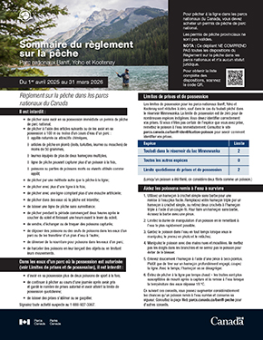 Pour obtenir la liste complète des dispositions, consultez le Règlement sur la pêche dans les parcs nationaux du Canada.Règlement général sur la pêche (Loi sur les parcs nationaux du Canada)