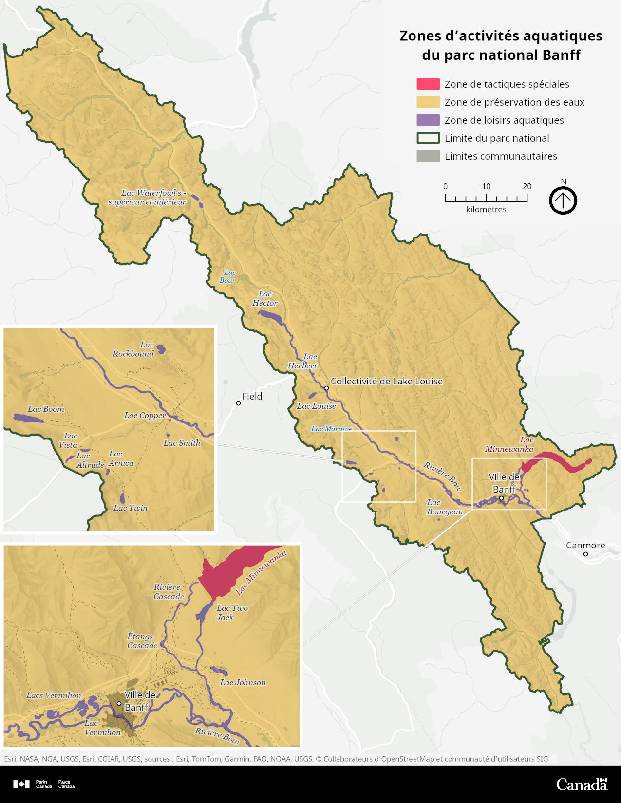 Figure 1. Zones d’activités nautiques dans le parc national Banff.