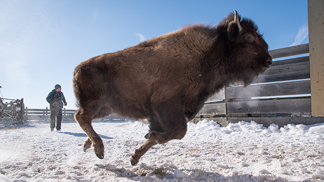 Elk Island a expédié jusqu’à 44 bisons des bois dans le Nord afin de favoriser la survie de cet animal emblématique.