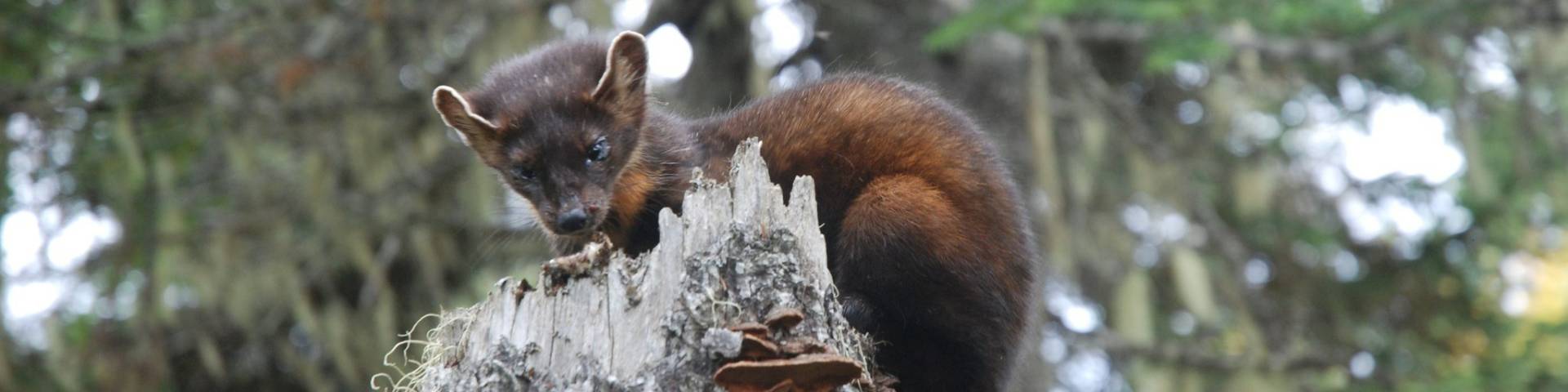 La martre d'Amérique sur l'île de Terre-Neuve est une sous espèce unique. Membre de la famille des mustélidés, elle se distingue par sa tache orange sur la gorge et par sa fourrure brun foncé.