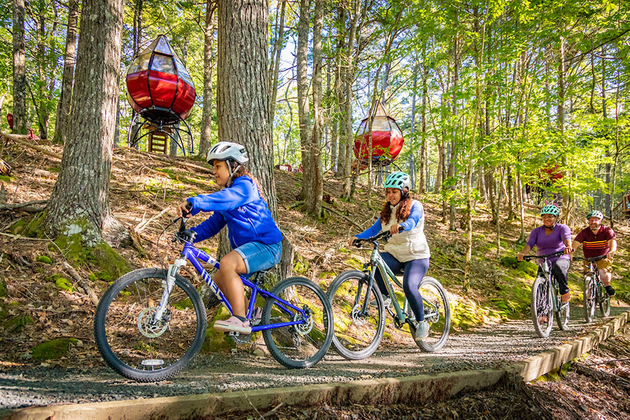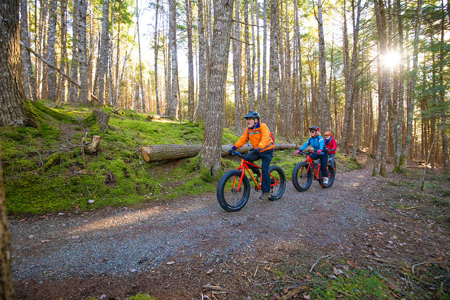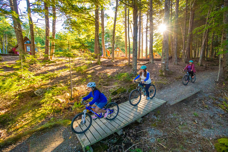 Faire du vélo est une super façon de partir à la découverte du parc national et lieu historique national Kejimkujik! Les vélos de montagne, les vélos à pneus surdimensionnés (« fat bikes ») et les vélos électriques (à assistance au pédalage) sont les bienvenus sur les sentiers polyvalents. Louez vos vélos et casques à l’avance auprès de Whynot Adventure, The Keji Outfitters (en anglais seulement).