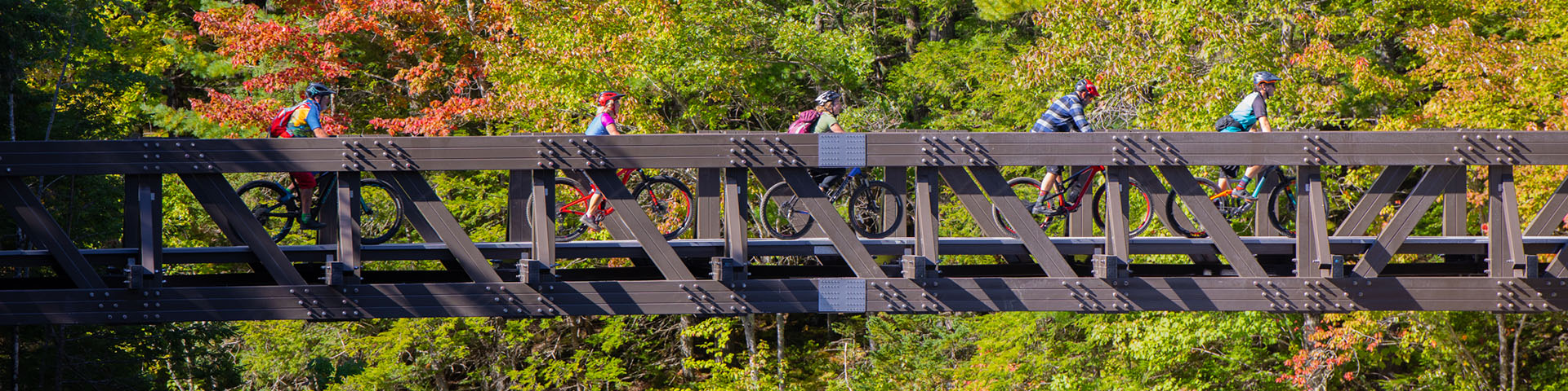 Dans l’avant-pays, plusieurs sentiers peuvent être explorés à vélo. Ces sentiers sont désignés comme des sentiers polyvalents, ce qui signifie que les cyclistes et les piétons partagent le sentier.