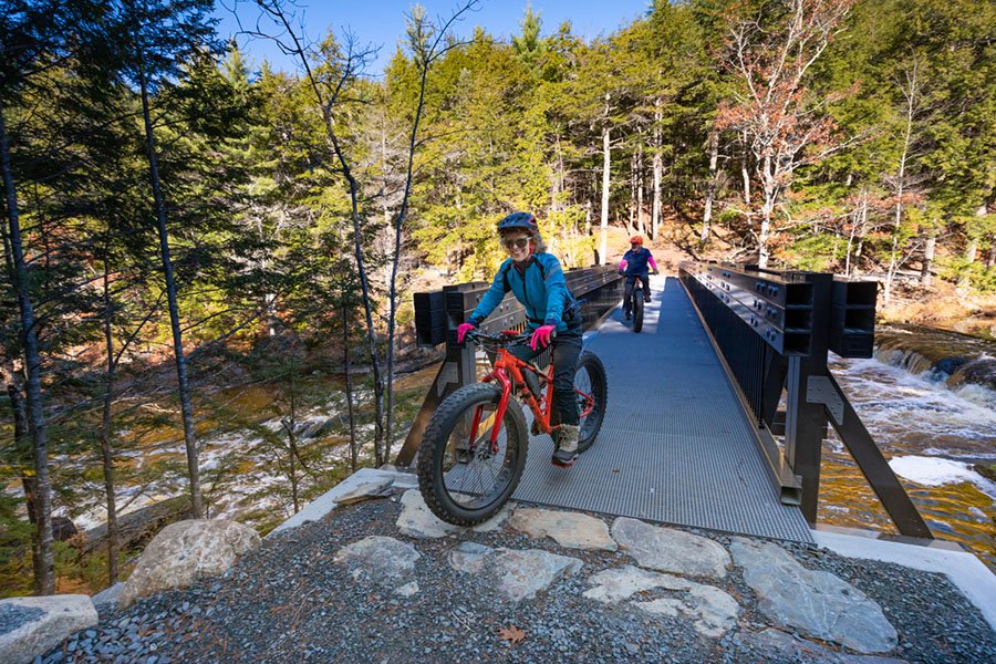 Une seule section du réseau de sentiers de l’arrière-pays est ouverte aux vélos. Vous pouvez circuler dans la partie sud de Kejimkujik, en suivant la route Peskowesk jusqu’au site 41 au ruisseau Lucifee. Un aire de stationnement est disponible à Eel Weir.