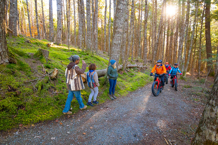 Tous les sentiers de vélo à Kejimkujik sont des sentiers polyvalents — vous rencontrerez des randonneurs et d’autres cyclistes