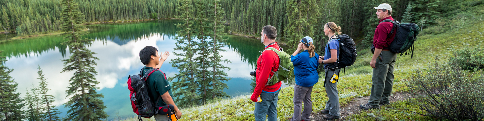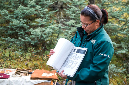 Il y a du personnel au poste de garde du Gahnįhthah Mie (Lac Rabbitkettle) et Náįlįcho (la chute Virginia) pendant la saison estivale.
