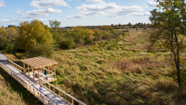 Optionnell : Prévoyez une collation ou un repas à déguster sous la pergola ou sur l’un des bancs le long du sentier. Sur le chemin du retour, pensez à vous arrêter à un étal de produits agricoles situé sur le chemin Reesor ou la 19e Avenue pour des produits frais et des douceurs d’automne.