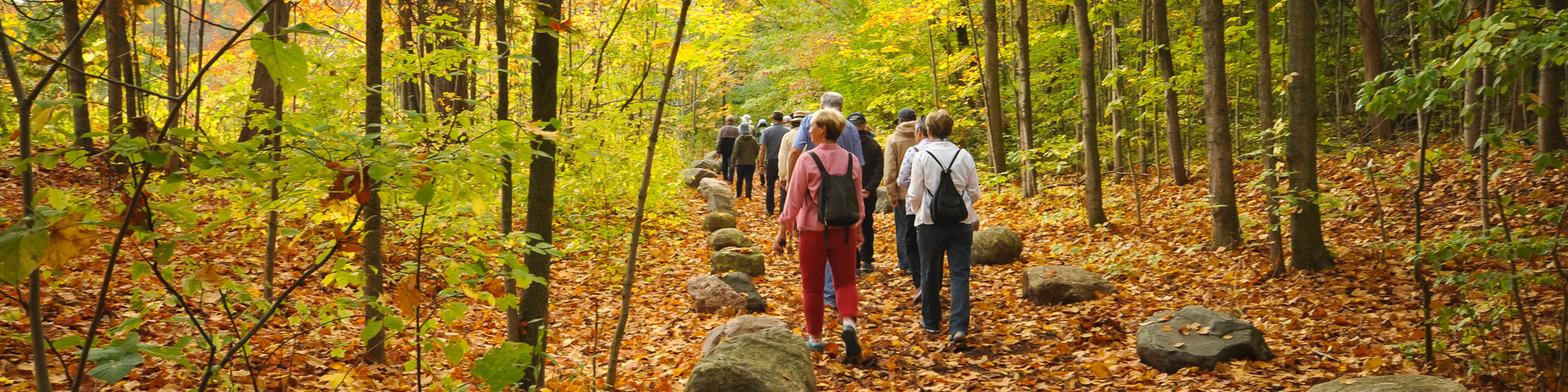 Le sentier Woodland propose des promenades plus ou moins longues dans un décor forestier, prés et rivière. Les arbres rongés, les branches tombées et les barrages témoignent de l’activité des castors le long du ruisseau Little Rouge. Parcs Canada offre des promenades guidées sur le sentier Woodland au départ du stationnement principal.